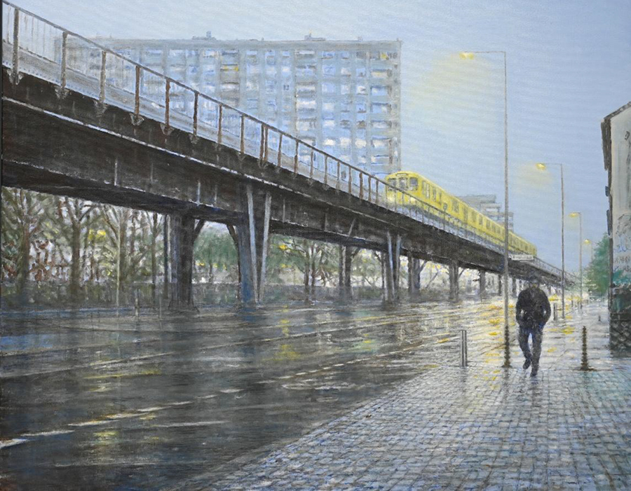 Anstelle einer Vernissage Eigentlich wollte der in Freiburg lebende Maler Celso Martínez Naves vom 20.11. bis 13.12.2020 im Engelsaal des Kunstverein Tauberbischofsheim e.V. ausstellen. Aufgrund der Coronasituation muss die Ausstellung und damit auch die Vernissage ausfallen. Statt dessen zeigen wir eine In den Werken von Celso Martínez Naves geht es motivisch immer wieder um das Thema Übergänge geht. Sujets seiner stimmungsvollen Nachtbilder sind häufig Orte des Transits: Straßen, Tankstellen, Bahnhöfen, Häfen oder Flughäfen. Im Kontrast dazu stehen atmosphärische Waldbilder. Die gedeckten Farbtöne und die Lichtführung spielen eine entscheidende Rolle und erzeugen einen flirrenden Schleier, der das Dargestellte verklärt erscheinen lässt. Die Bilder scheinen genau und detailliert. Schaut man genau hin, gibt es aber nichts graphisch genau Gemaltes, kaum gestochenen Scharfes. Das „Sfumato“ und das richtige Einsetzen von Licht und Schatten schaffen die Illusion von Realität.